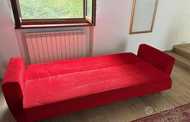 Divano sia contenitore, che divano letto ( singolo), rosso, in ottimo stato, vendo con anche i cuscini abbinati