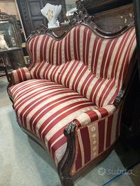 Divano Luigi Filippo in mogano, Piemonte, con tre cimase.