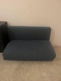 Divano basso modello Curving acquistato l’anno scorso a €259,00 e non piu in produzione, colore blu, due posti apribile, purtoppo presenta una bruciatura di sigaretta.