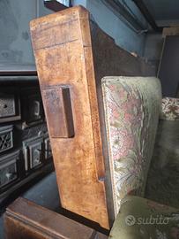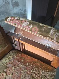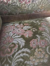 Divano d'epoca in legno con cuscini in velluto