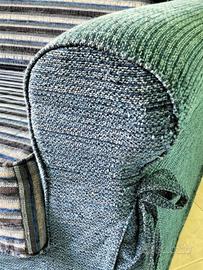 Si vende, per necessità di spazio, divano da 3 posti con 2 cuscini. Acquistato alla cifra di 450,00€, seppure sia stato utilizzato poco, come visibile dalle foto, la parte inferiore ed il bracciolo destro sono un po' rovinati con qualche filo tirato, ciò tuttavia non ne compromette l’uso e la comodità.
