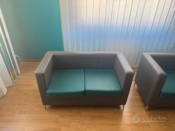 Divano telaio in legno. Divano 2 posti , realizzato con telaio in agglomerato ligneo dello spessore di mm. 18, per i braccioli, e mm. 22 per il sedile e lo schienale. Imbottitura in poliuretano espanso di altissima densità.