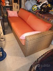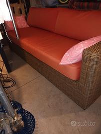 bellissimo divano da esterno pagato circa 1000 euro! la struttura in rattan sintetico, di una qualità davvero eccezionale, è come nuova. i cuscini sono in buone condizioni, perfettamente utilizzabili, ma ovviamente valuterei di sostituirli per ritrovarsi un divano pari al nuovo. il divano è sempre stato collocato in terrazzo coperto, lontano da pioggia e sole diretto. vero affare!