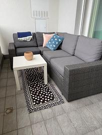 Vendo divano da giardino componibile: si compone di 4 pezzi che possono essere utilizzati per comporre anche un divano con due posti e due poltrone. È completo di cuscini sfoderabili e lavabili. Tenuto molto bene.