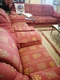 Vendo divano per passaggio a uno nuovo. Ha sulle spalle circa 20 anni quindi ci sono segni di usura anche se non evidenti. È danneggiata solo una seduta del pezzo lungo, facilmente ripristinabile poiché si tratta solo di una tavola su cui poggia l'imbottitura. Se interessati ad altre foto o info scrivetemi in privato. Prezzo trattabile.