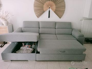 vendo bellissimo divano in condizioni ottimali, colore come potete vedere grigio chiaro, penisola allungabile e cassone, e poggiatesta regolabili
