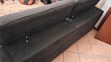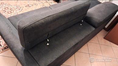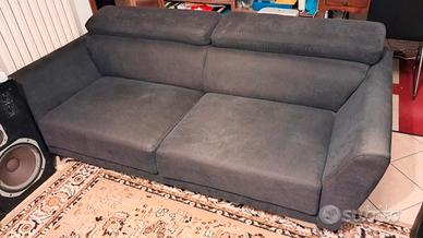 vendo divano per tre persone color blu scuro in buono stato, utilizzato poco, , materiale stoffa simile alcantara, piedini cromati, poggiatesta regolabili, misura 206 per 100cm ritiro a carico dell'acquirente