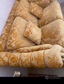 divano imbottito damascato con cuscini