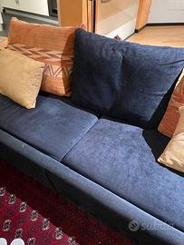 Come da foto e da titolo vendo divano 3 posti in tessuto blu, con schienale con cuscini e struttura in metallo, bracciolo lato destro e piedini rettangolari trasparenti Divano di design Misure 95x225 cm