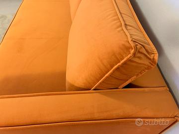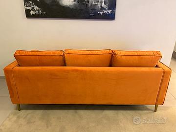 *** PREZZO PROMO *** Divano di design NUOVO 3 posti. Disponibili 2 pezzi in PRONTA CONSEGNA. Reinterpretazione del divano disegnato da Jacques Deneef modello N501 di Ethnicraft simile al Florence di Knoll. Rivestimento in velluto colore arancione e gambe in acciaio inossidabile colore oro. DIMENSIONI: Larghezza 200cm Profondità 87cm Altezza 85cm Altezza braccioli 67cm Altezza seduta 43cm ***PRODOTTO VISIBILE DI PERSONA CON APPUNTAMENTO PRESSO NOSTRO MAGAZZINO*** AS Furniture *349*8866026*