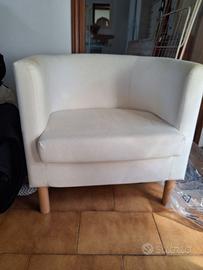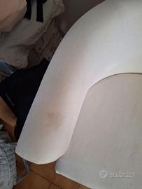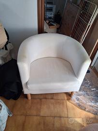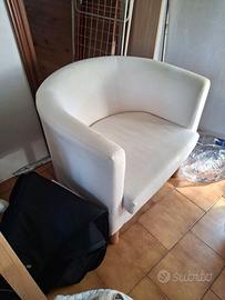 poltrona design ovale color crema, tessuto in cotone, gambe in legno. Vendo per inutilizzo.