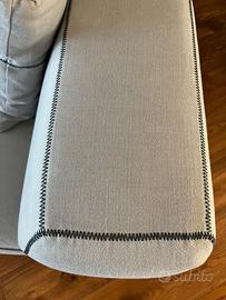 Divano Bend prodotto da B&B Italia, designer Patricia Urquiola, colore grigio chiaro con impunture grigio scuro, corredato di quattro cuscini (60cm x 55 cm) e un poggiatesta (35cm x 18 cm).