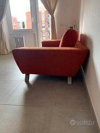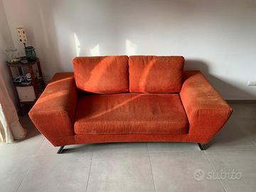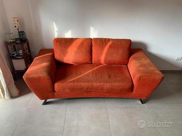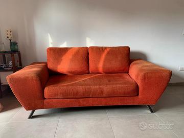 REGALO divano design 3 posti, colore arancio. Dimensioni: Larghezza 190cm, Profondità Divano 107cm / Profondità Seduta 64cm, Altezza alla Seduta 38cm / Altezza ai Braccioli 57 / Altezza ai Cuscini 80. Trasporto e ritiro a carico del beneficiario. ROMA zona MARCONI.