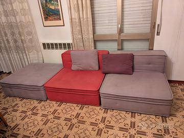 Divano designer famoso componibile non riesco a ricordarmi il nome, presente prime edizioni Grande Fratello televisivo. Composizione di 6pz, 3 modelli (angolo, centrale e puff, 3 colori, cuscini abbinati). Misure 1x1m. Agganciabili a piacimento.