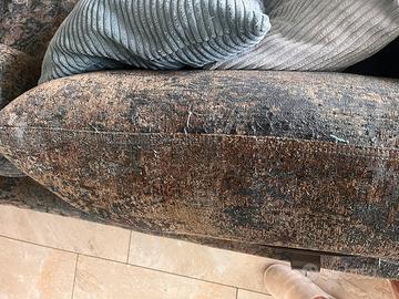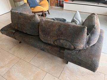 Divano con rivestimento in tessuto e struttura di appoggio in ferro, dimensioni L.250cm P.105cm tessuto categoria H. Vendo al 50% del costo.