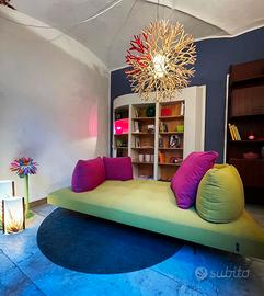 La seduta trapuntata, per i momenti conviviali della giornata o come letto di emergenza, è in colore Lime.