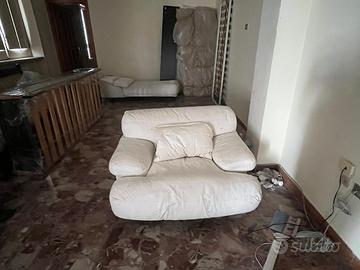 Divano di cassina tre posti con due poltrone e chaise longue. Tessuto in damasco di san leucuo di caserta, periodo fine anni 70. In buone condizioni.