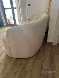 La struttura in legno di pino multistrato garantisce solidità e durata, mentre l'imbottitura in schiuma di seduta e schienale, con densità rispettivamente di 24 kg/m³ e 20 kg/m³, mantiene il comfort senza perdere la fermezza necessaria per un riposo adeguato. Inoltre, la base è dotata di piedini in gomma antiscivolo che proteggono il pavimento e offrono maggiore stabilità, evitando movimenti indesiderati. Questo divano combina estetica e funzionalità senza complicazioni. La sua tessitura in poliestere facilita la manutenzione, e il design senza linee angolari lo rende un pezzo versatile che si adatta sia a ambienti minimalisti sia a decorazioni più accoglienti.