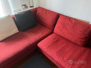 Divano B&B Italia modello Charles dimensioni 325x230 (chaise longue) in tessuto rosso con 3 cuscini grandi rossi, 2 grigi ed uno bianco. I cuscini sono parte integrante del divano e sempre B&B. Ottime condizioni NON SPEDISCO