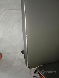Divano grigio in ecopelle presenta lungo le cuciture delle screpolature. Dimensioni 115*90 cm