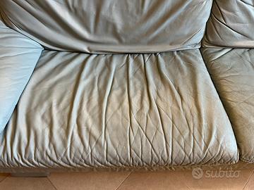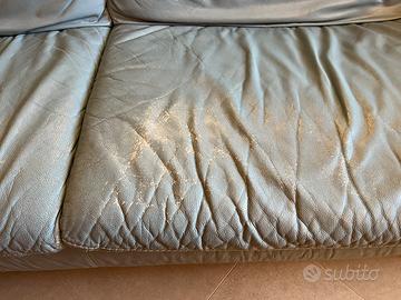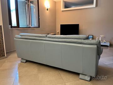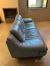Vendo divano 3 posti in pelle, DIVANI & DIVANI colore celeste chiaro. Unici segni di usura su una seduta (visibile in foto). Struttura in ottimo stato.