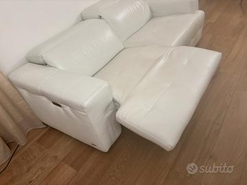 Divano “Divani&Divani by Natuzzi”, mod. Intenso, pelle, colore bianco. 2 posti reclinabili elettronicamente. Dimensioni L210 P110 A77.