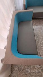 Per cambio progetto Vendesi in blocco 4 divanetti in tessuto e ecopelle colori grigio e azzurro, dimensioni 145x65x60 cm, da due posti ciascuno. Sono compresi due tavolini lounge in legno colore bianco (non in foto), per creare salottino completo.