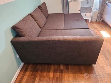 Divano letto ikea marrone a elle. Diventa letto due piazze e sotto la chaise longue ha un vano contenitore molto capiente. È in condizioni perfette , lo vendiamo perché ci serve spazio in casa.