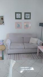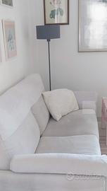 Divano ditta DOIMO SALOTTI ben tenuto (mai animali). Due anni fa é stato revisionato dal tappezziere ed é stato fatto un nuovo rivestimento tipo alcantara sfoderabile e lavabile ad acqua. Fornito di copri-braccioli e copri-poggiatesta. La seduta é confortevole e lo schienale sostiene bene.
