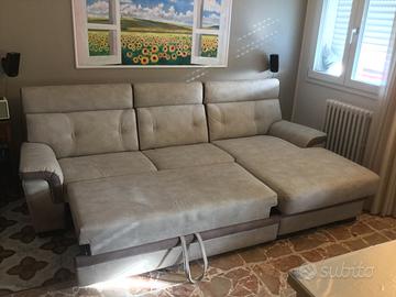 Splendido divano Dondi modello Guru, tre posti maxi con letto delfino + chaise longue con contenitore e inserto.