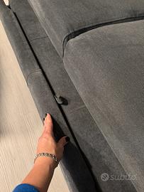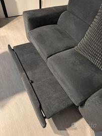 Divano Dondi modello Dovizio di 175 cm di lunghezza, profondità 95 cm, due posti, grigio scuro, con poggiatesta regolabili con meccanismo a cricchetto e pouf delfino estraibile per stare comodamente distesi. Acquistato nel giugno 2024 ancora in garanzia fino a giugno 2026, in vendita per errore di calcolo misure, risulta troppo ingombrante per l’open space sala-cucina di casa. Design squadrato moderno, con cusxinqtura poggiareni. Tutta la cuscinatura in poliuretano espanso. Sfoderabile e lavabile. Prezzo pagato all’acquisto 1450 €.