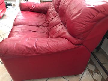 Due divani in pelle. Colore rosso. Le prime tre foto sono di quello meglio conservato. Le ultime tre sono di quello col rivestimento più usurato ma con una seduta reclinabile con appoggiapiedi. Il rivestimento porta i segni del tempo ma le strutture sono buone. Chiedo 50€ ciascuno o valuto offerte verosimili per entrambi. Ritiro al piano terra