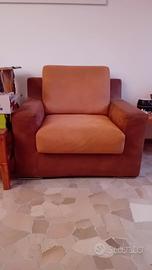 Divano Dondi Salotti ottimo stato, terminale 1 posto + cuscino di bracciolo 85x90x86, pouf rettangolare 75x65x45, poltrona + 2 cuscini di bracciolo 105x90x86, terminale 2 posti maxi + 1 cuscino di bracciolo 150x90x86, angolo aperto 100x100x86. Color arancio antico e marrone. Tessuto tecnico morbido, resistente e di facile manutenzione.