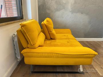 divano commissionato su misura dotato di schienali traslanti realizzato in tessuto lavabile non sfoderabile. colore giallo senape (come in foto)