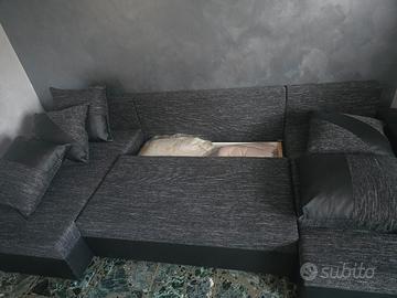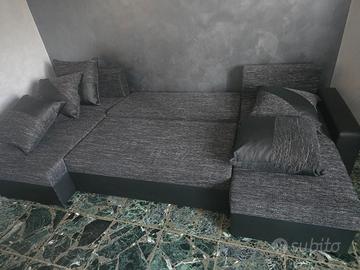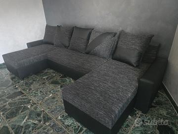Splendido divano con doppia penisola, contenitore e trasformazione in letto. Le penisole sono divisibili, potendo scegliere se tenerne una, nessuna o entrambe. Realizzato in ottima ecopelle e tessuto intrecciato molto resistenti. Pari al nuovo, mai utilizzato. Cedo causa trasloco