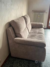 Bellissimo divano praticamente nuovo pelrxge usato pochissimo, ancora in garanzia. Struttura portante in legno massello di abete e rivestimentoin microfibra color grigio seta. Dimensioni: - altezza= 100 cm - lunghezza= 200 cm - profondità= 90 cm