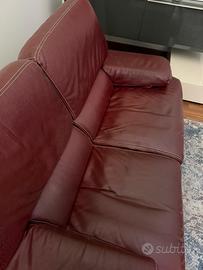 Divano doppio color amaranto, usato ma ancora in buone condizioni.