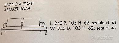 Divano 4 posti marca DRIADE modello LIRICO completamente lavabile lunghezza 240 larghezza 105. Il divano si presenta come nuovo.