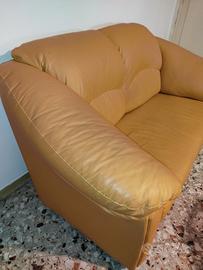 Divano due posti in ecopelle giallo ocra. Poco utilizzato