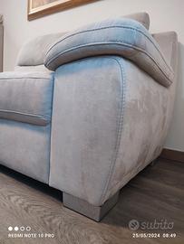 Divano due posti, colore grigio chiaro. tessuto simile Alcantara.