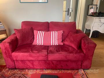 Divano rosso porpora con chaise longue alcantara ben tenuto.