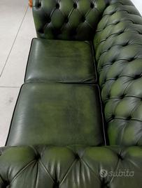 Originale divano 2 posti chesterfield ( chester ) modello club inglese originale vintage in pelle verde anticato ( Antique Green ) degli anni '90.