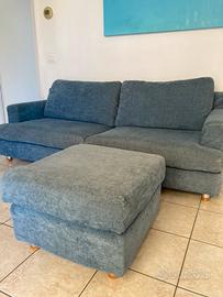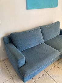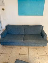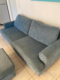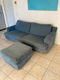 In ottime condizioni, divano due posti molto comodo in tessuto blu, con pouf. Dimensioni Divano: 208x95 cm Pouf: 60x60 cm