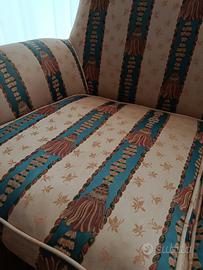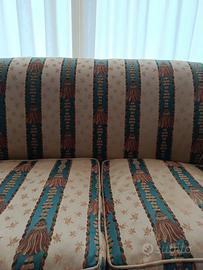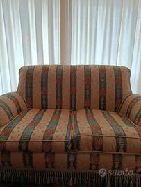 Divano due posti vintage, a fantasia e nappine nella parte inferiore