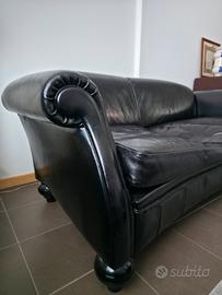 Vendo divano in Pelle nera marca Doimo originale e pulito sempre con prodotti specifici per la pelle. È stato conservato con cura, in buonissimo stato generale ad eccezione delle sedute che vanno fatte imbottire.