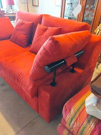 divano fisso due posti in Alcantara rosso bordeaux (più scuro delle foto) misure: L 156 x 87 P x h 90 schienale, compresi cuscini altezza 50 cm la seduta bracciolo destro in metallo nero alzabile 4 cuscini in dotazione