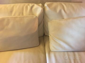 Vendo divano bianco due posti, struttura in tessuto e divani rivestiti in ecopelle. Vendo a 100 Euro o miglior offerente.