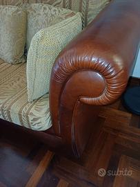 Divano due posti in pelle e stoffa