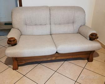 Divano due posti in stoffa e legno massello