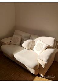 Classico divano due posti, lineare, in tessuto sfoderabile e lavabile in lavatrice, colore ecru. Ritiro 5° piano. Comodo accesso - anche per furgone - in cortile interno condominiale. Contatto iniziale solo per e-mail.